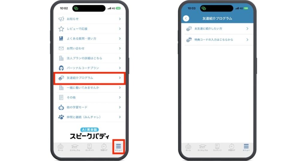 スピークバディ友達紹介キャンペーンの特典内容